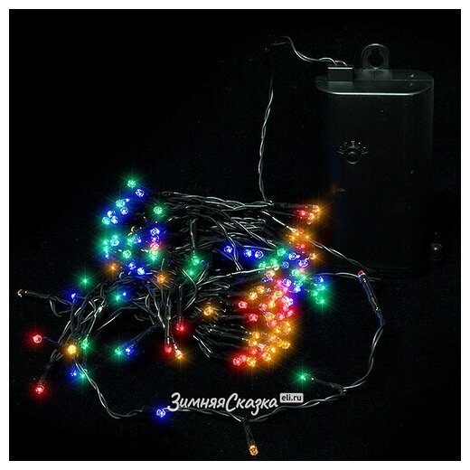 Светодиодная гирлянда на батарейках 240 разноцветных LED ламп 17.9 м, черный ПВХ, контроллер, таймер, IP44, Kaemingk информация: