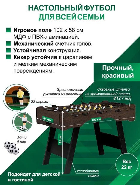 Настольный футбол (кикер) "Stuttgart" (122x61x81см, венге) 17 522 ₽