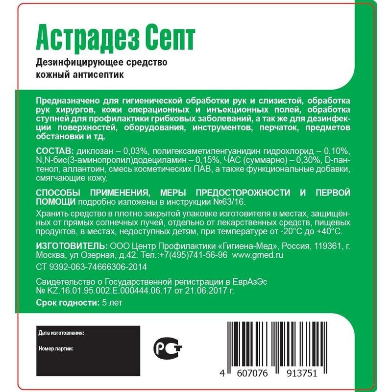 Отзывы на Антисептик кожный дезинфицирующий бесспиртовой 5 л астрадез-септ, готовый раствор, крышка