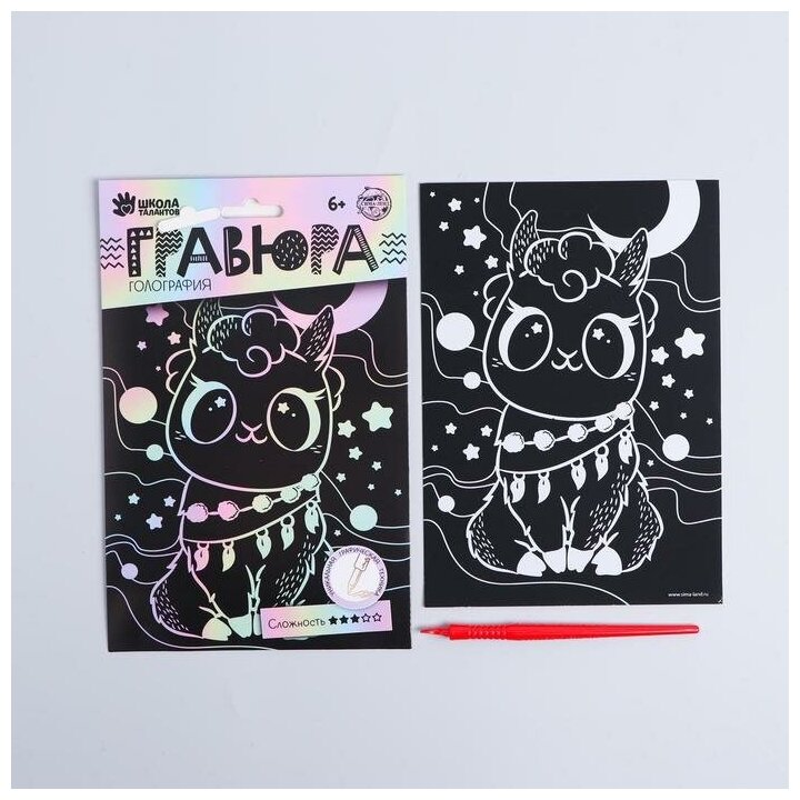 Гравюра Школа талантов "Лама и звезды", А5, с металлическим эффектом, голография