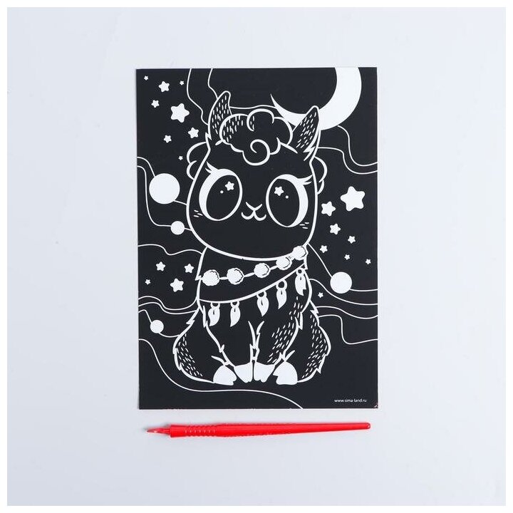 Гравюра детская «Лама и звёзды» А5, с металлическим эффектом голография