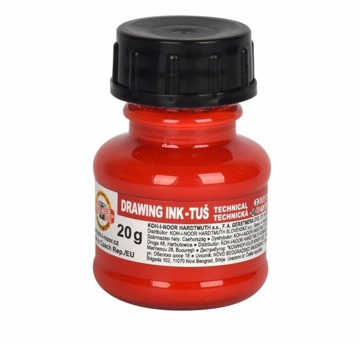 Тушь акриловая KOH-I-NOOR плакатная, 20 г, красная, флакон (0141700402LP) информация: