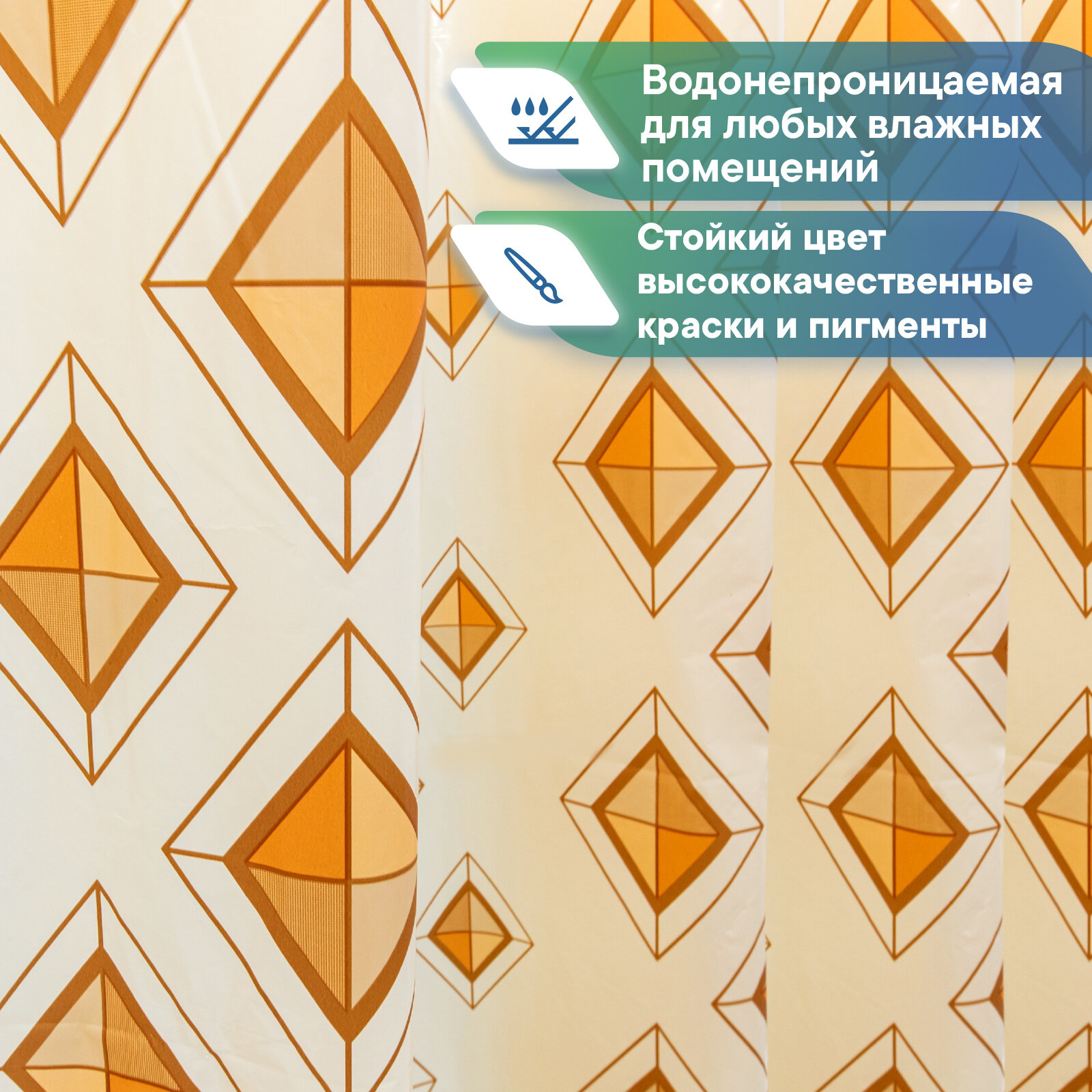 Штора для ванной комнаты VILINA водонепроницаемая с рисунком занавес с кольцами 180х180 см Диамант бежевая информация: