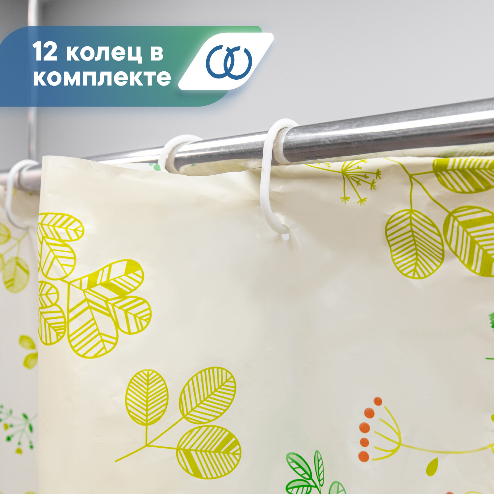 Отзывы на Штора для ванной комнаты VILINA водонепроницаемая с рисунком занавес с кольцами 180х180 см Веточки бежевая