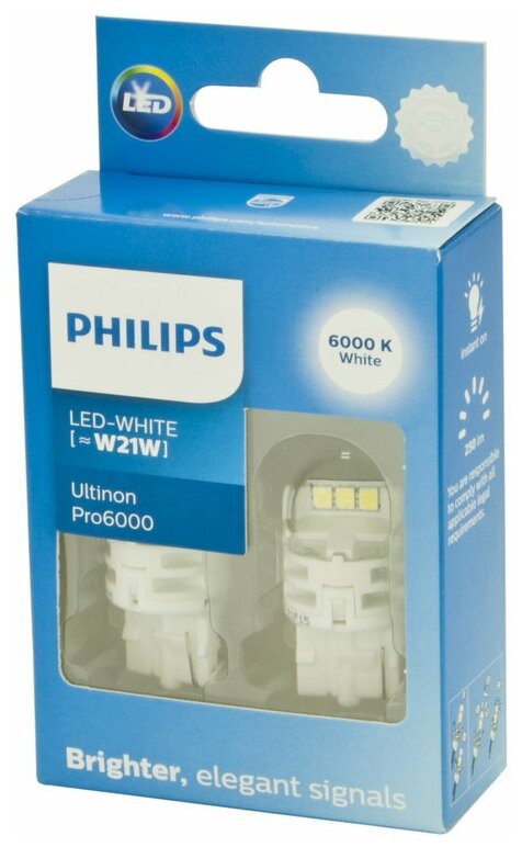 Лампа светодиод 12v21w w3x16d philips white ultinon pro6000 6000к 250lm 11065cu60x2