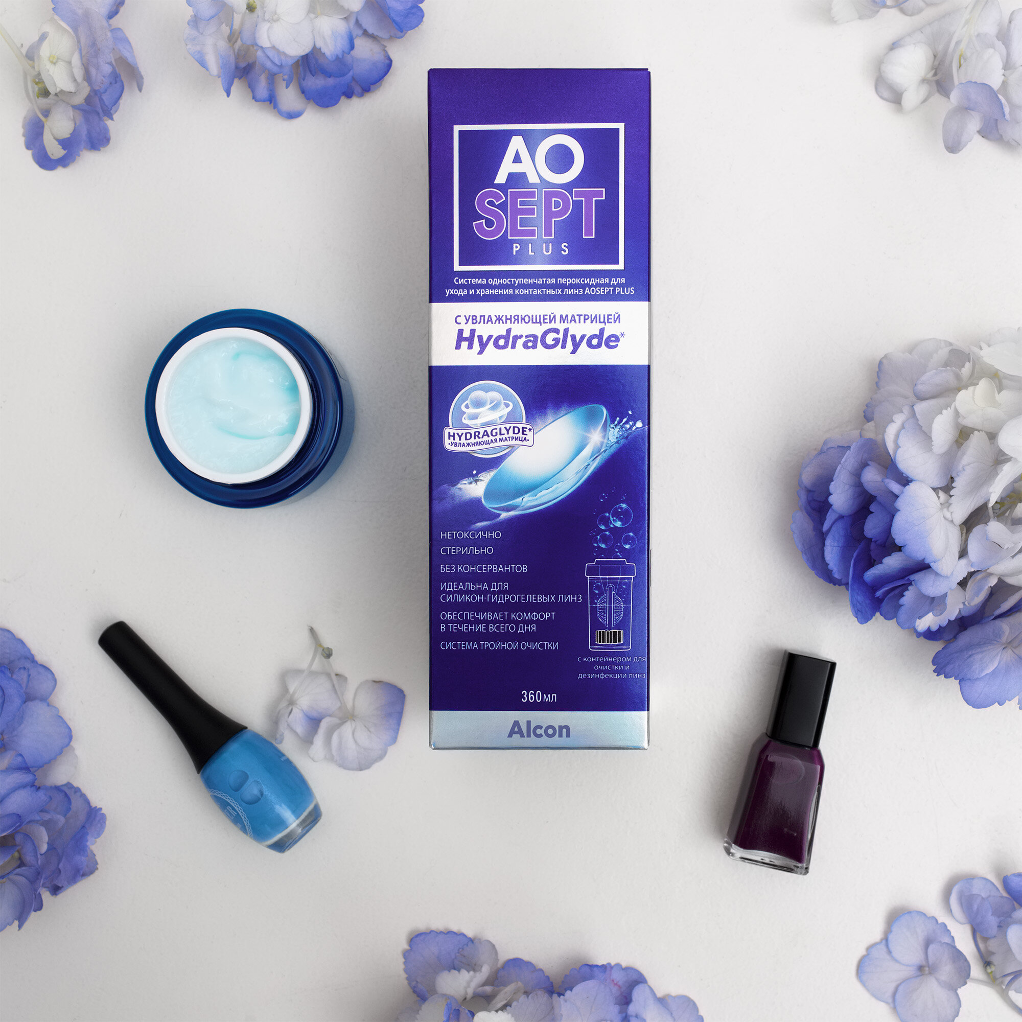 10 цен на Alcon пероксидный раствор AOSEPT Plus HydraGlyde 360 мл + контейнер для линз