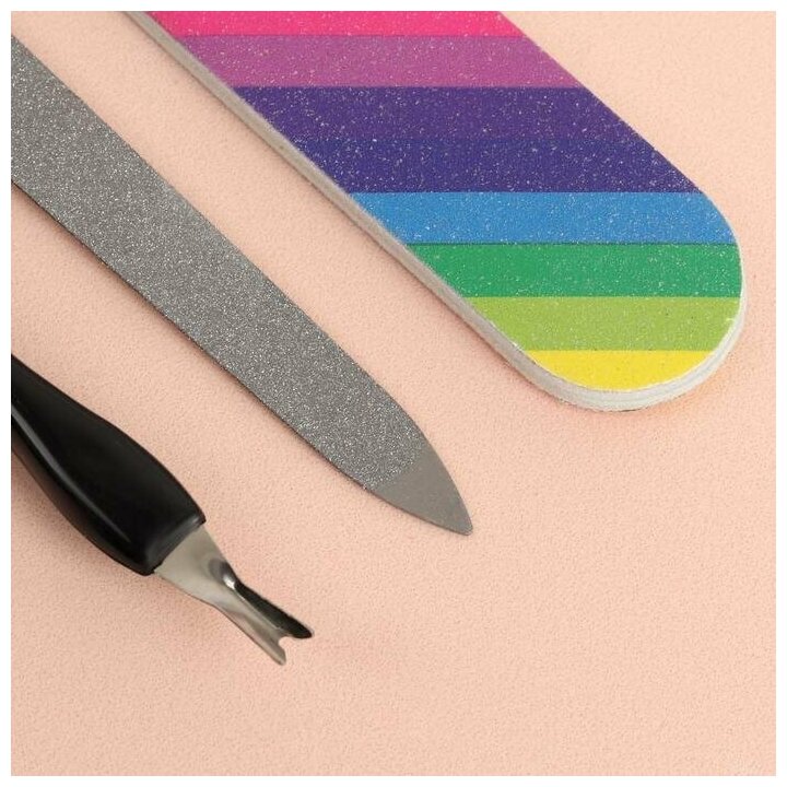 Набор маникюрный, 3 предмета, цвет чёрный/радужный (1 шт.) информация:
