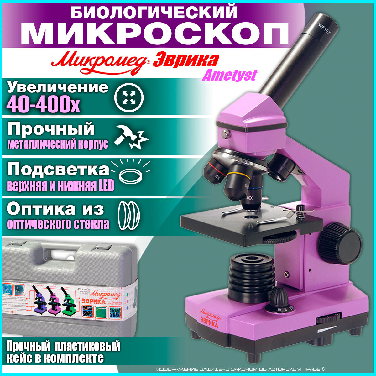 Школьный биологический микроскоп в кейсе Микромед Эврика 40х-400х Аметист информация: