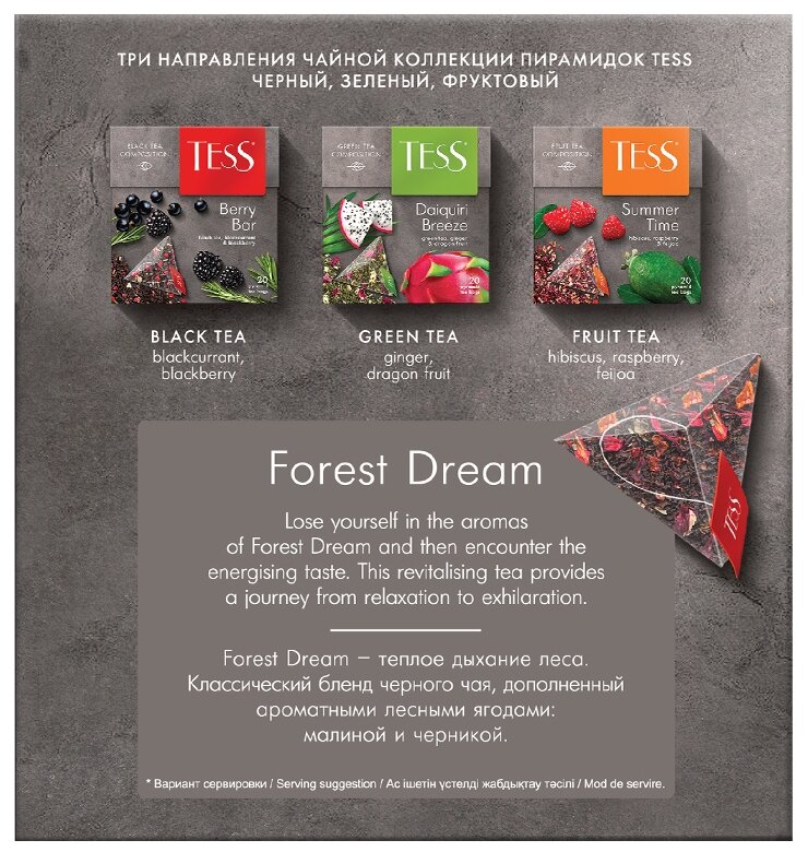 Чай Tess "Forest Dream", черный, лесные ягоды, 20 пакетиков-пирамидок по 1,8г - 3 шт. информация: