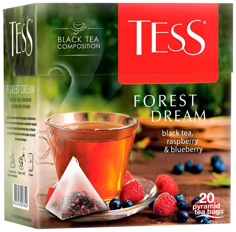 Чай Tess "Forest Dream", черный, лесные ягоды, 20 пакетиков-пирамидок по 1,8г.
