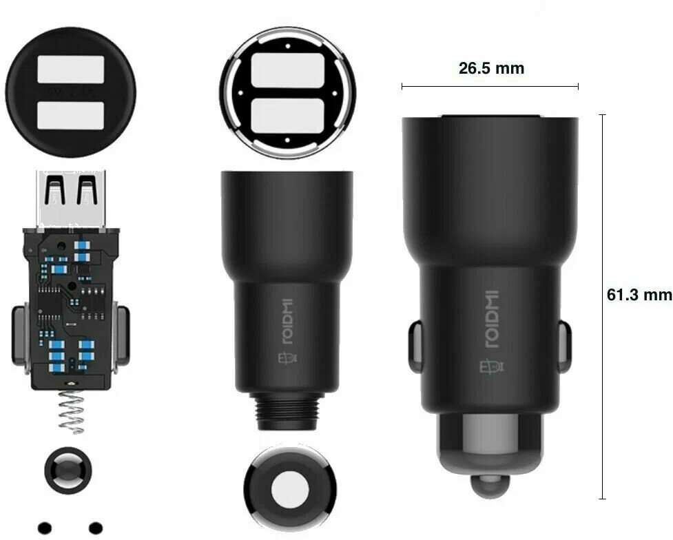 Автомобильная зарядка Roidmi 3S (2 USB), черный