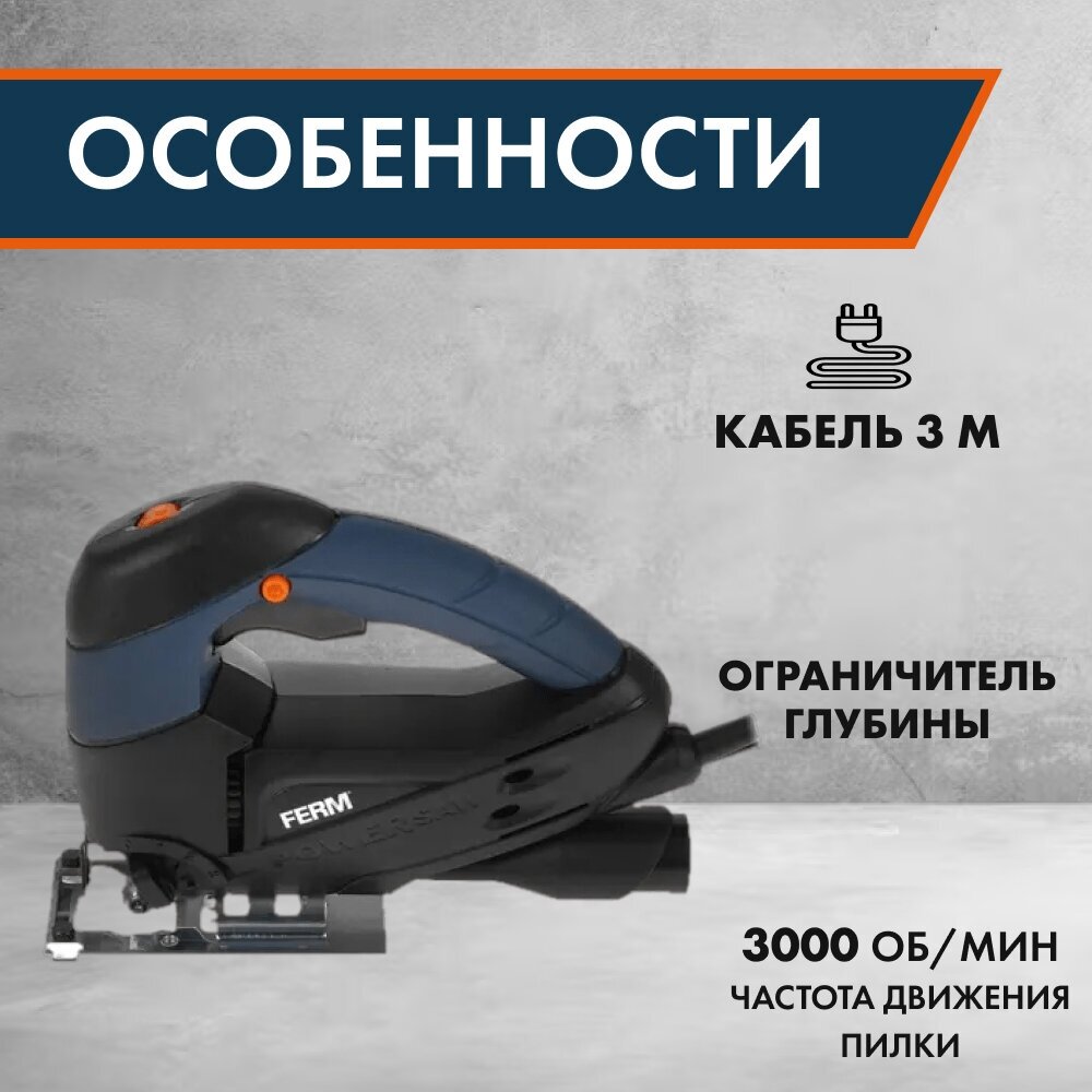 Электролобзик Ferm 710 Вт., 800-3000 ход/мин, пропил 110 мм, коробка информация: