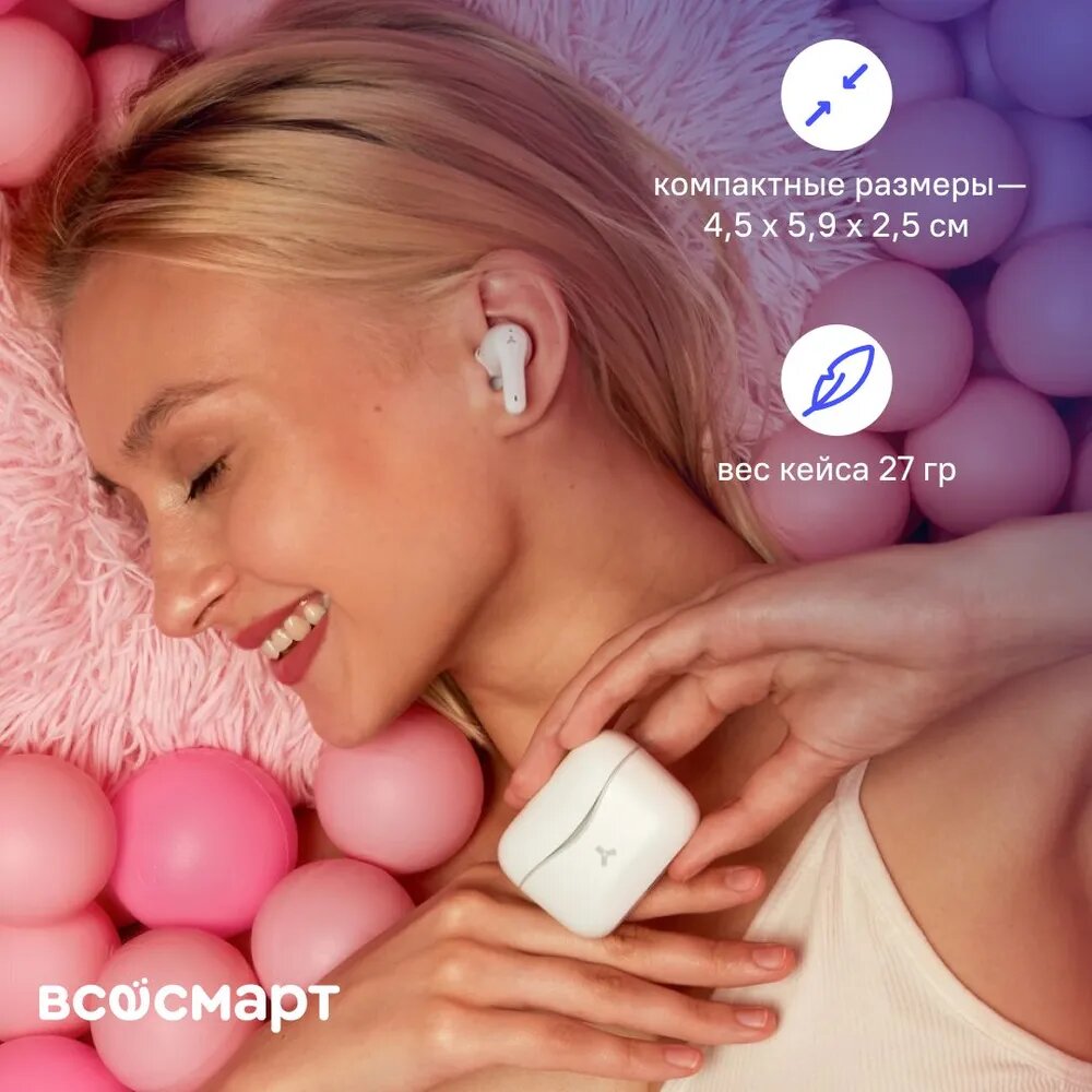 Наушники Accesstyle Tornado Tws, беспроводные, вакуумные, до 6 часов, Type-C, белые accesstyle 94186 .