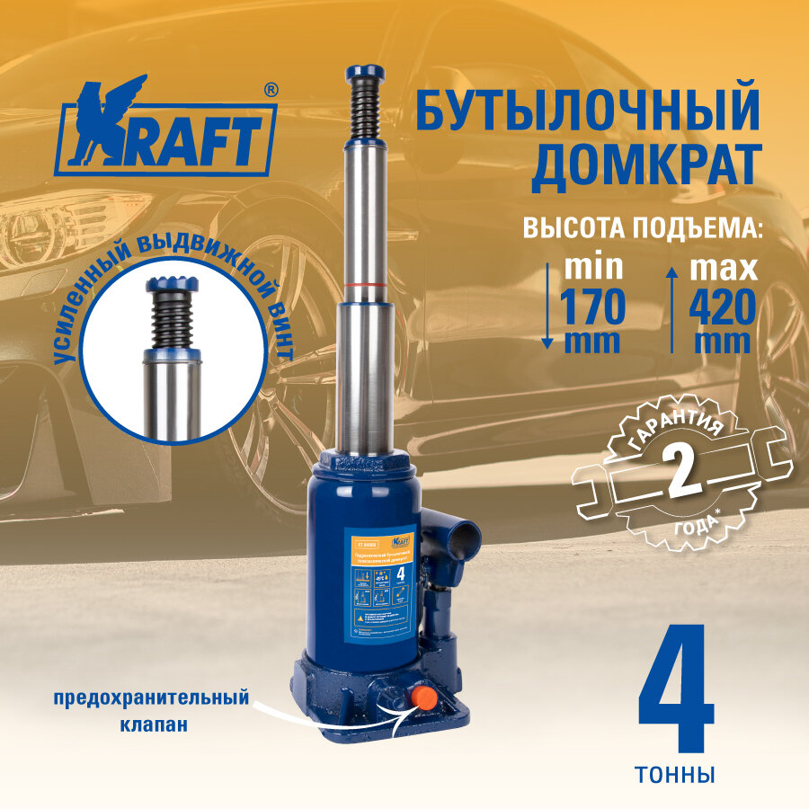 Отзывы на Бутылочный телескопический домкрат KRAFT 4 т, 170-420 мм KT 800050