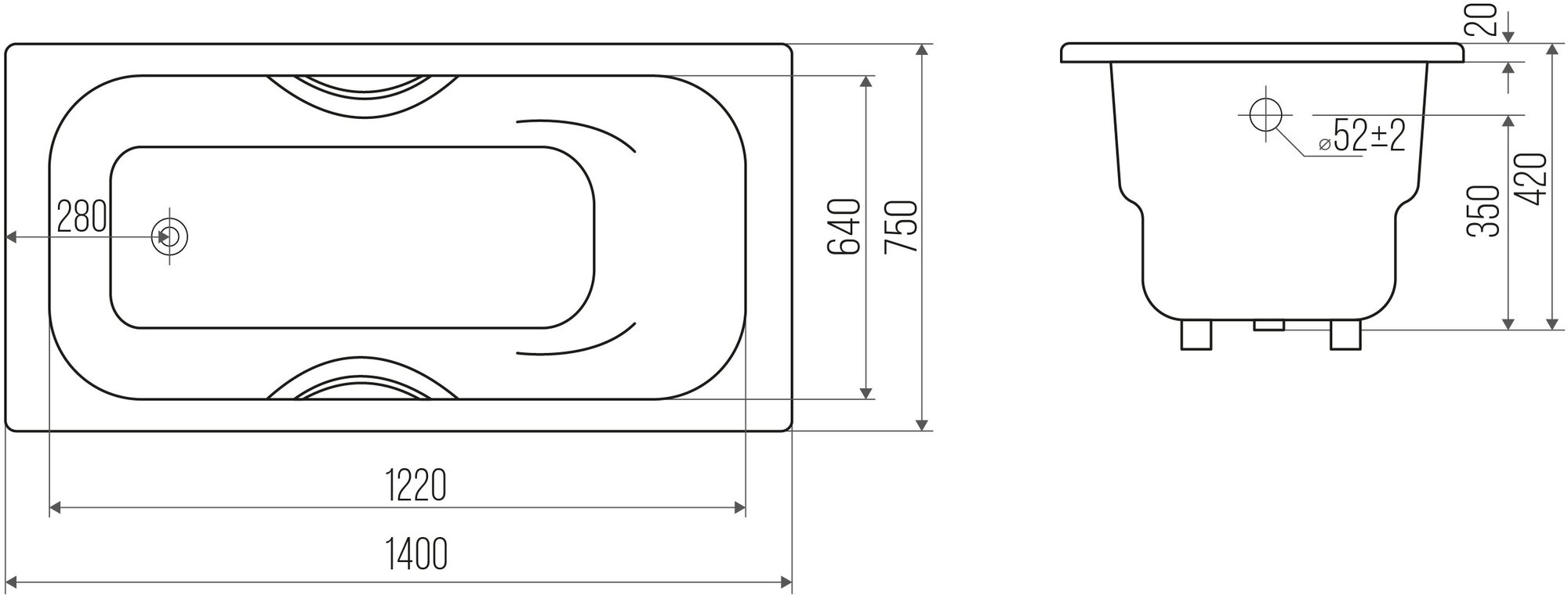Ванна Gamma 140х70 см, акриловая, на каркасе, экран к ванне Gamma 140