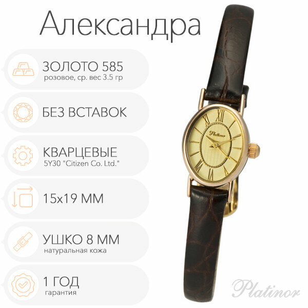 Женские золотые часы Platinor Александра, арт. 44430.420 информация:
