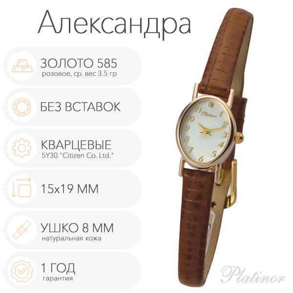 Женские золотые часы Platinor Александра, арт. 44430.105 информация:
