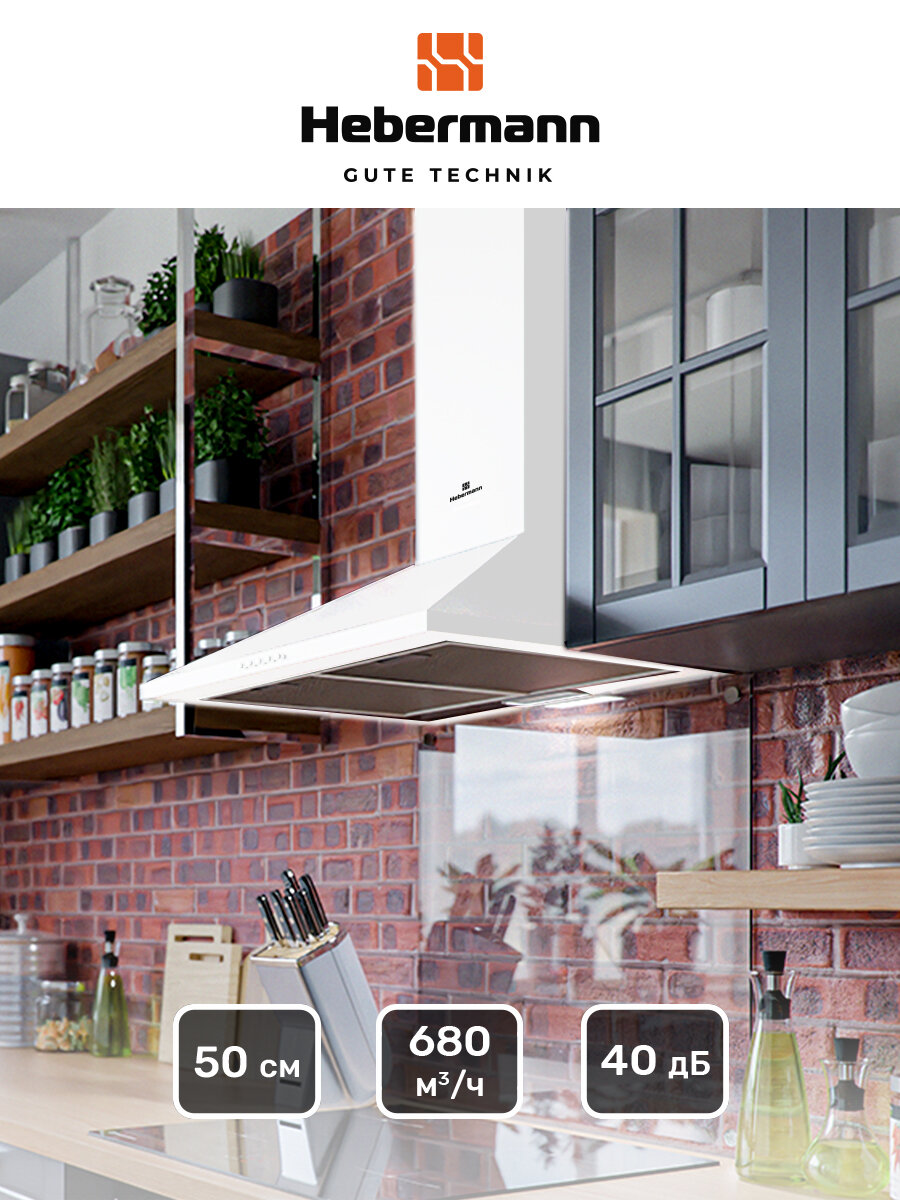 Кухонная вытяжка купольная Hebermann HBWH 50.1 W информация: