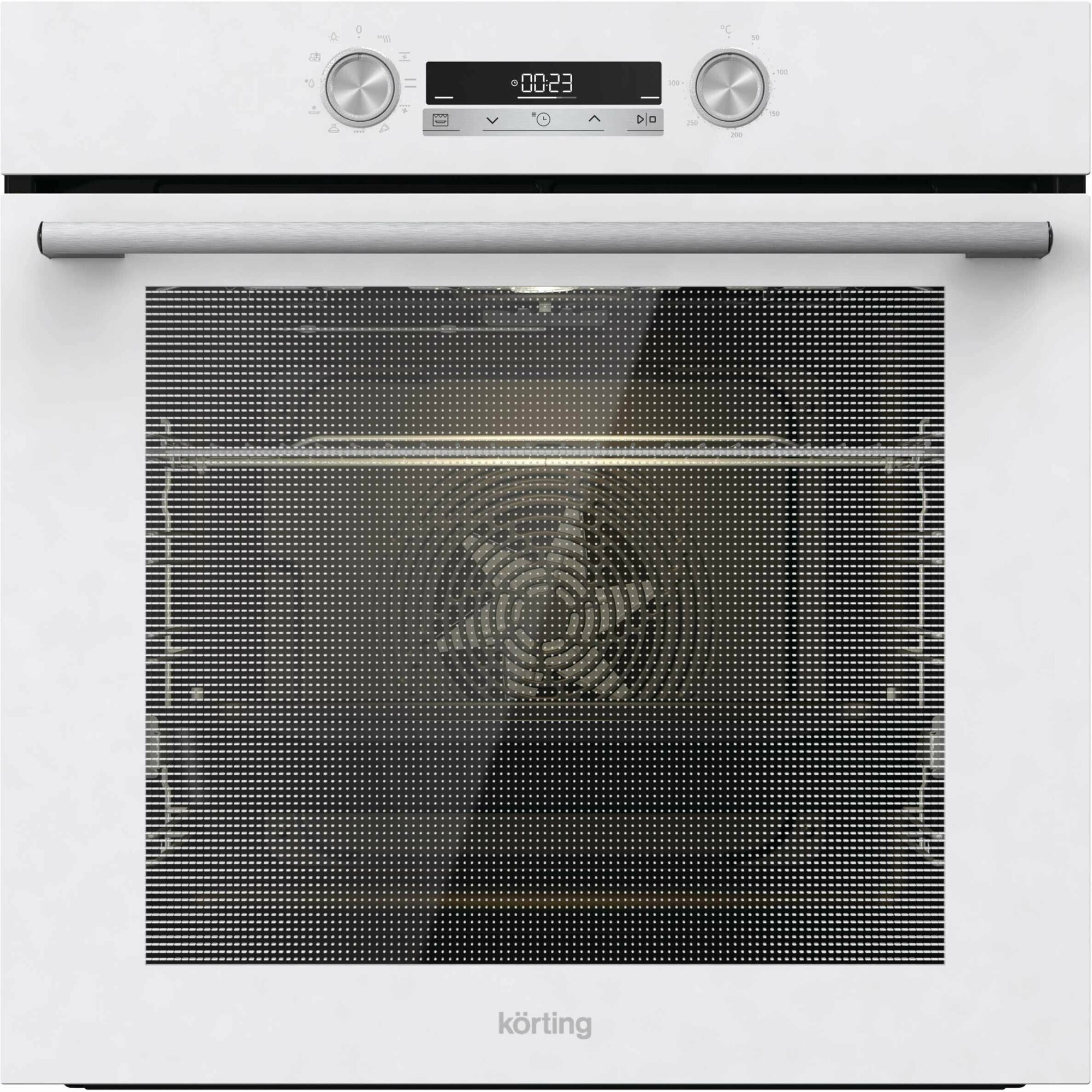 Встраиваемая электрическая духовка Korting с сенсорным управлением VISION LED, панель управления - стекло, LED дисплей белого цвета, 10 режимов, утапливаемые поворотные регуляторы, объем духовки 77 л, двухслойное остекление, каталитическая самоочистка, оч