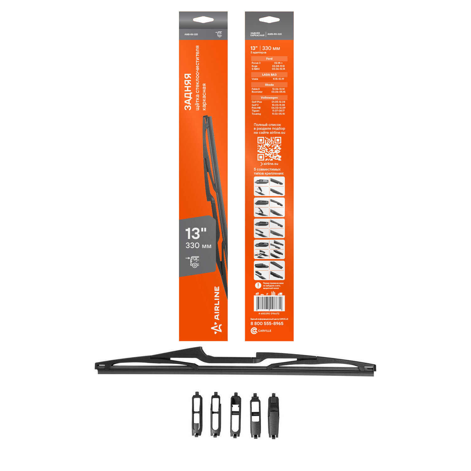 Щетка стеклоочистителя 330 мм (13") задняя каркасная, 5 адаптеров AWB-RK-325 AIRLINE информация:
