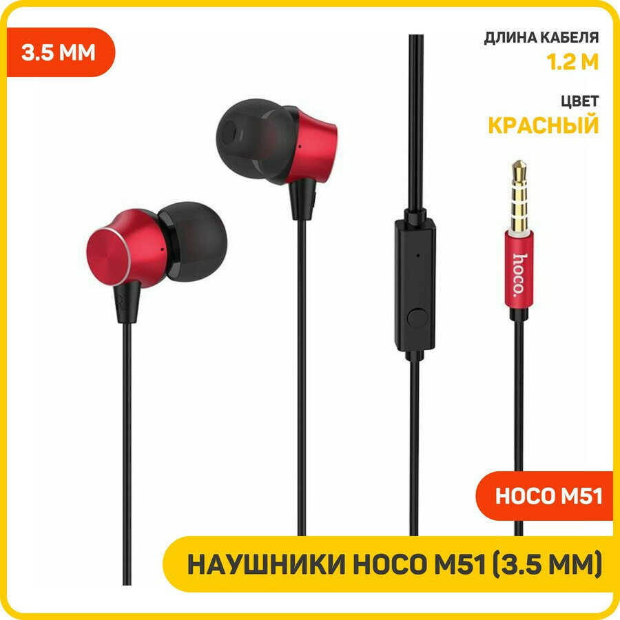 Проводные наушники вкладыши HOCO M51 Proper, AUX Jack 3.5mm, для телефона/компьютера, 1.2 м, красный 397 ₽
