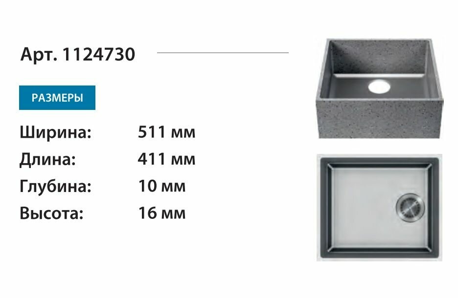 Кухонная мойка, раковина, Ника 570, искусственный камень, графит