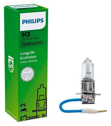 Лампа h3 longlife ecovision 12v 55w pk22s, PHILIPS 12336LLECOC1 (1 шт.)