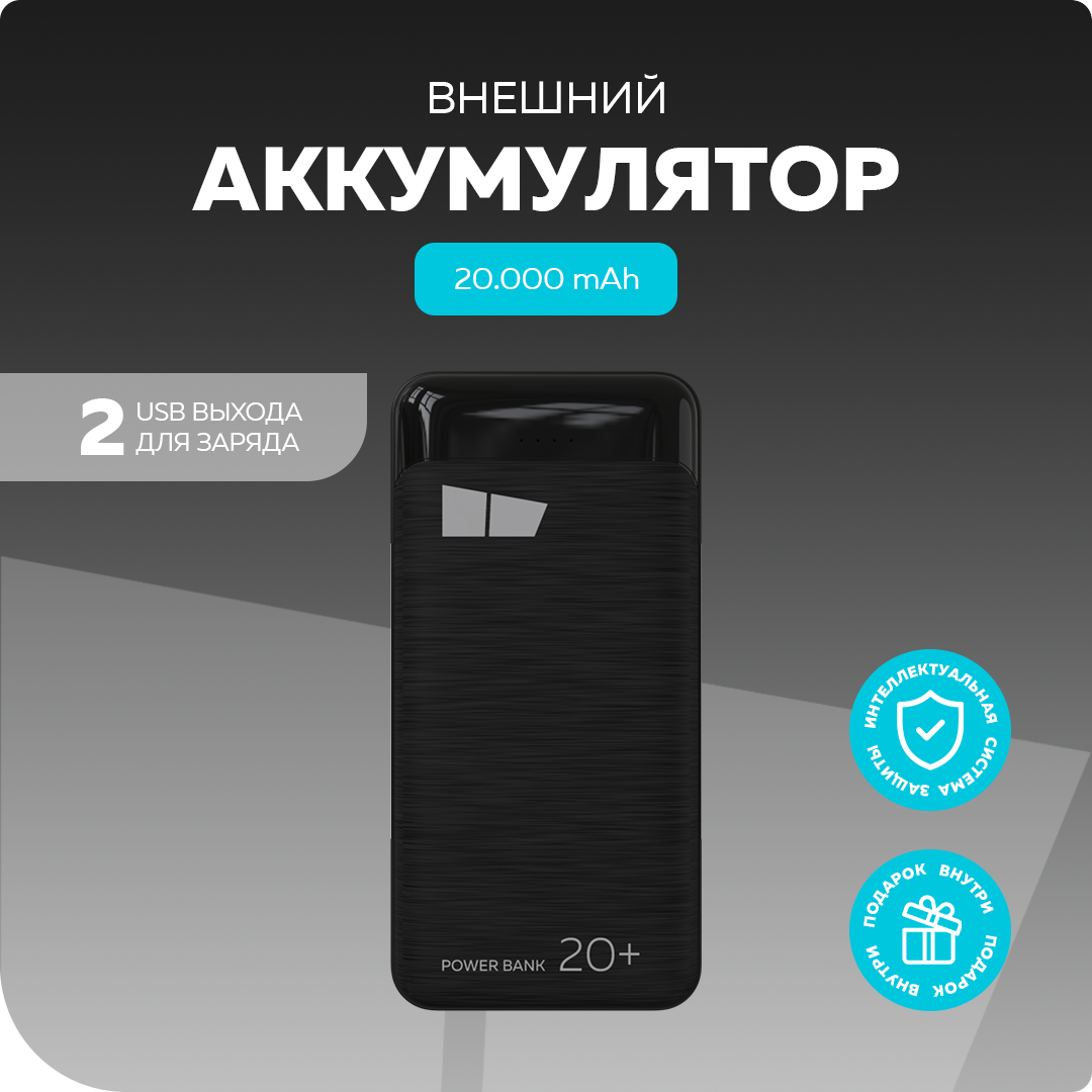 Внешний аккумулятор More Choice PB33-20 20000mAh 2USB 2.1A черный 2 421 ₽