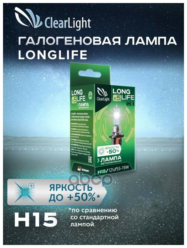 Лампа 12 В H15 15/55 Вт Long Life Clearlight ClearLight арт. MLH15LL информация: