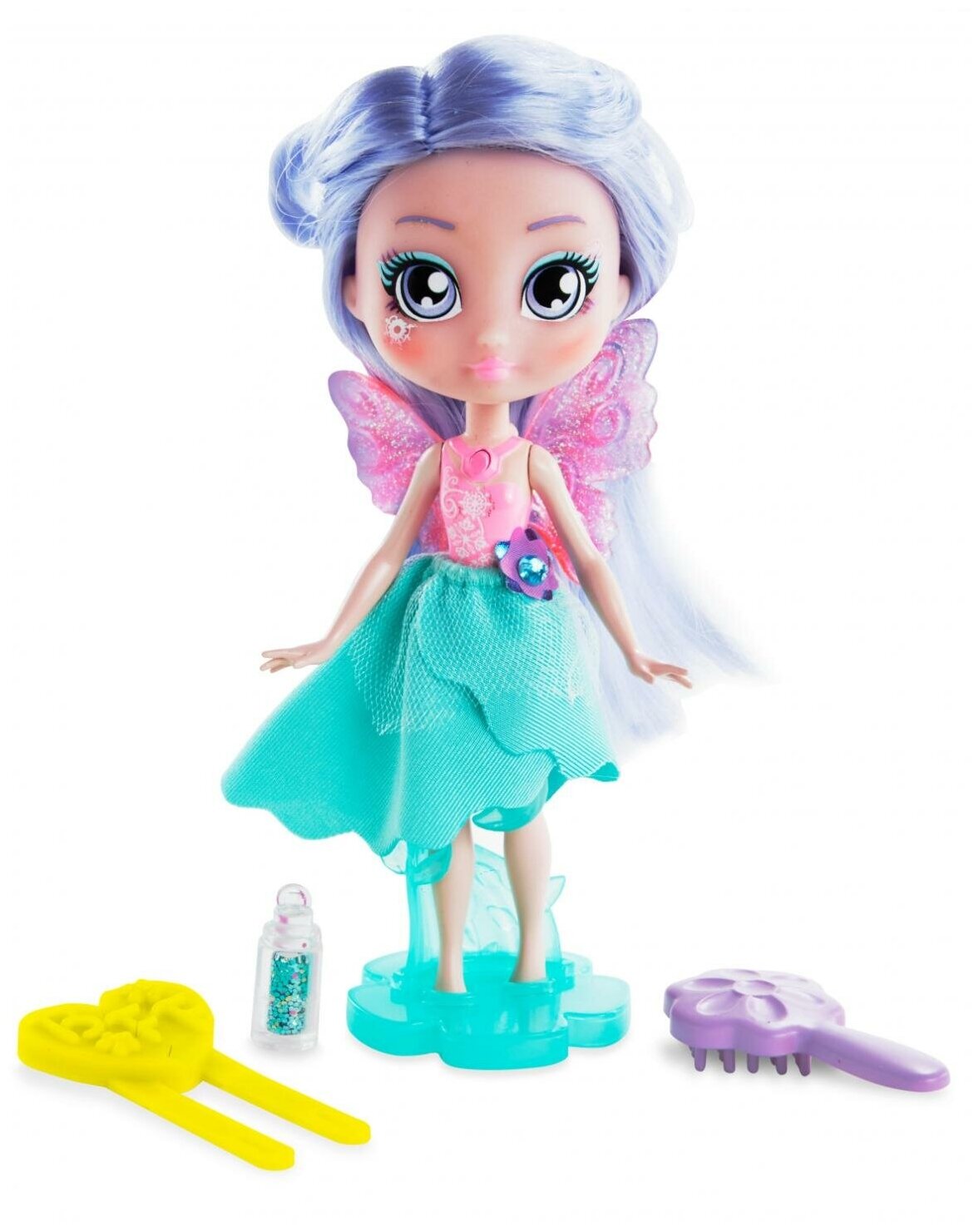 | Комплектация | кукла, расческа, заколка для девочки - 2 шт., бутылочка с блестками, подставка для куклы, дом-фонарик |