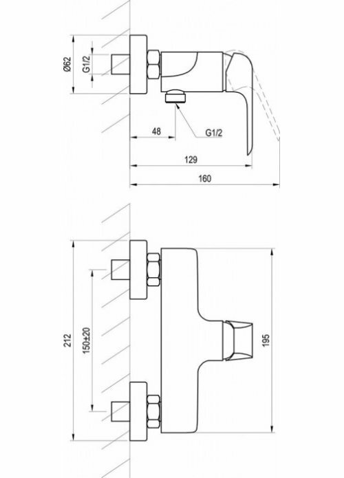 Смеситель на раковину настенный Эверест B46-350 с круглым поворотным изливом, кран-буксы 1/2", хром