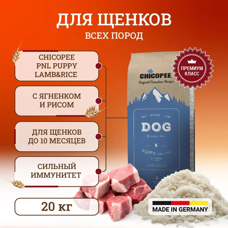 Чикопи ПНЛ для щенков, с ягненком и рисом / Chicopee PNL Puppy Lamb & Rice, 20 кг