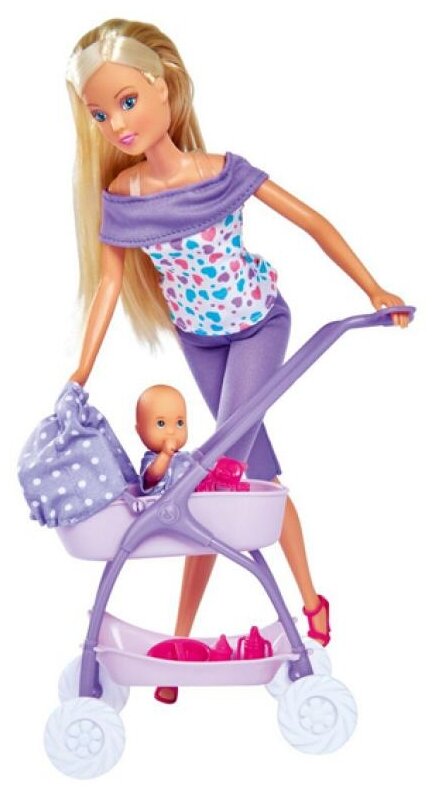 | Комплектация | кукла Штеффи 29 см, малыш 5 см, аксессуары (коляска, бутылочка, игрушки) |