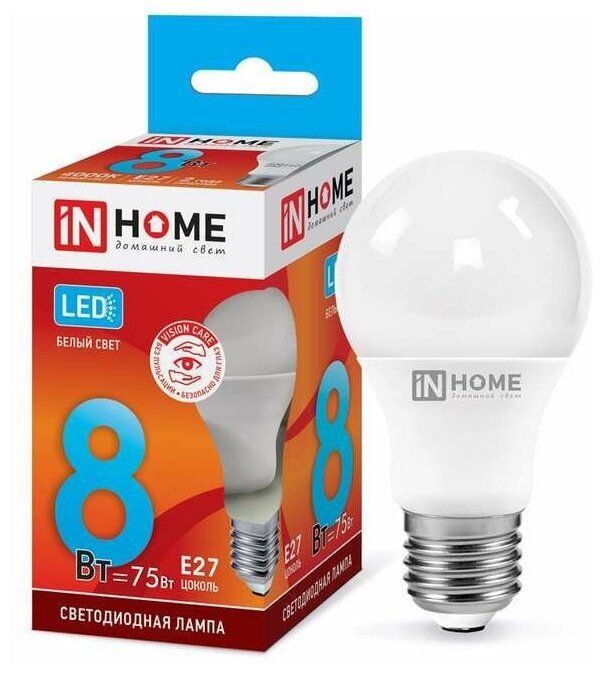 10 цен на Светодиодная лампа IN HOME LED-A60-VC 8Вт 230В Е27 4000К 720Лм 4690612024028