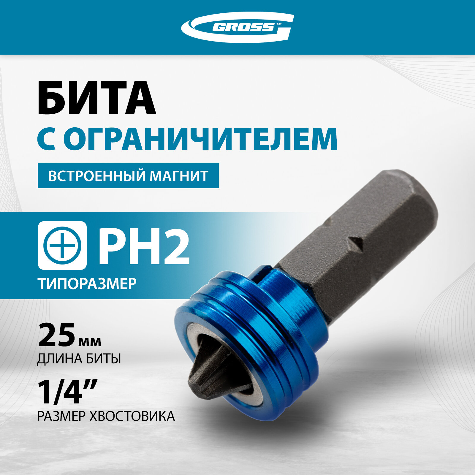 Бита с ограничителем и магнитом (PH2x25 мм) Gross 11455