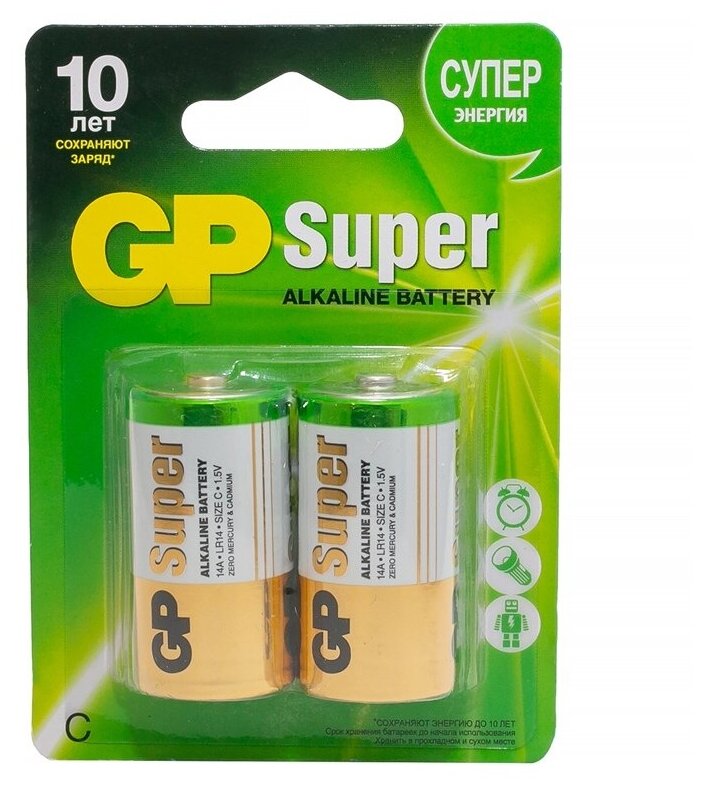 GP Батарейки Super эконом C/LR14/14A Алкалиновая 2шт информация: