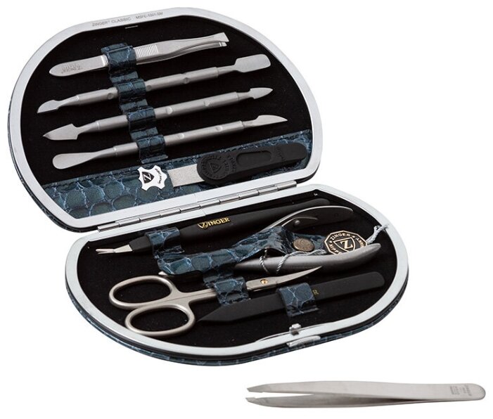 Отзывы на Маникюрный набор Premium-качества Zinger MSFE-1001-3 SM, 9 предметов + пинцет, черный
