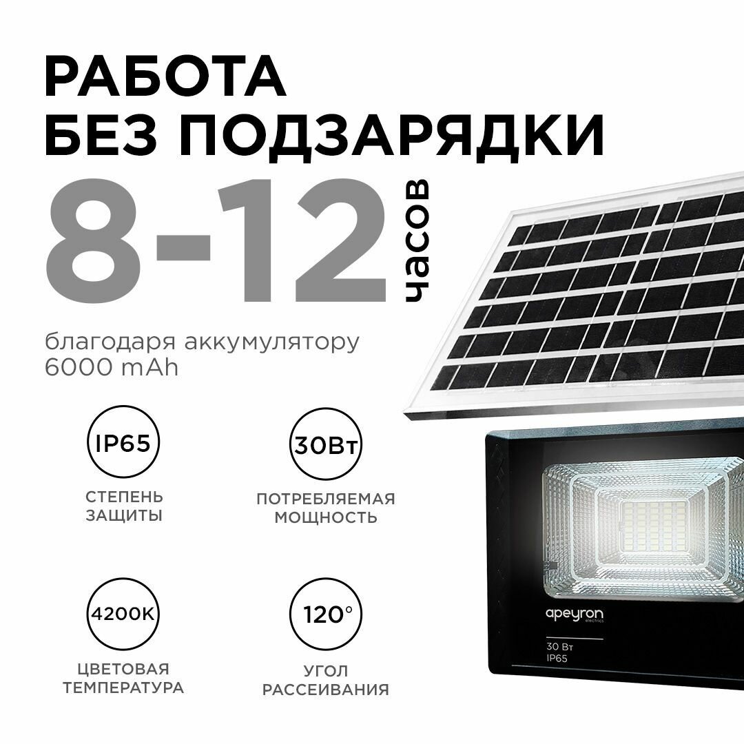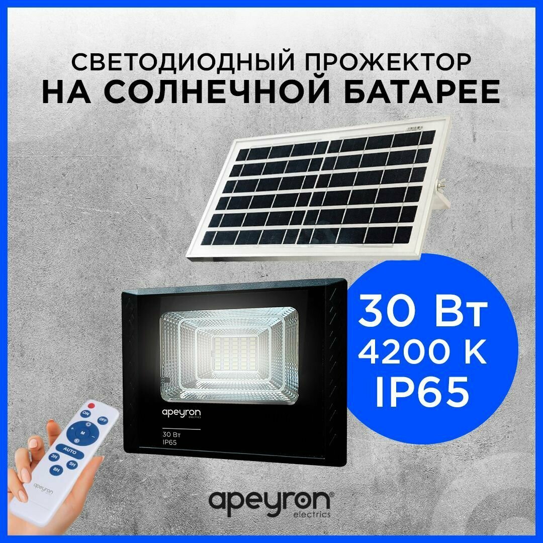 Светодиодный прожектор Apeyron на солнечной батарее, светильник с датчиком движения и света, 30 Вт, 4200 К