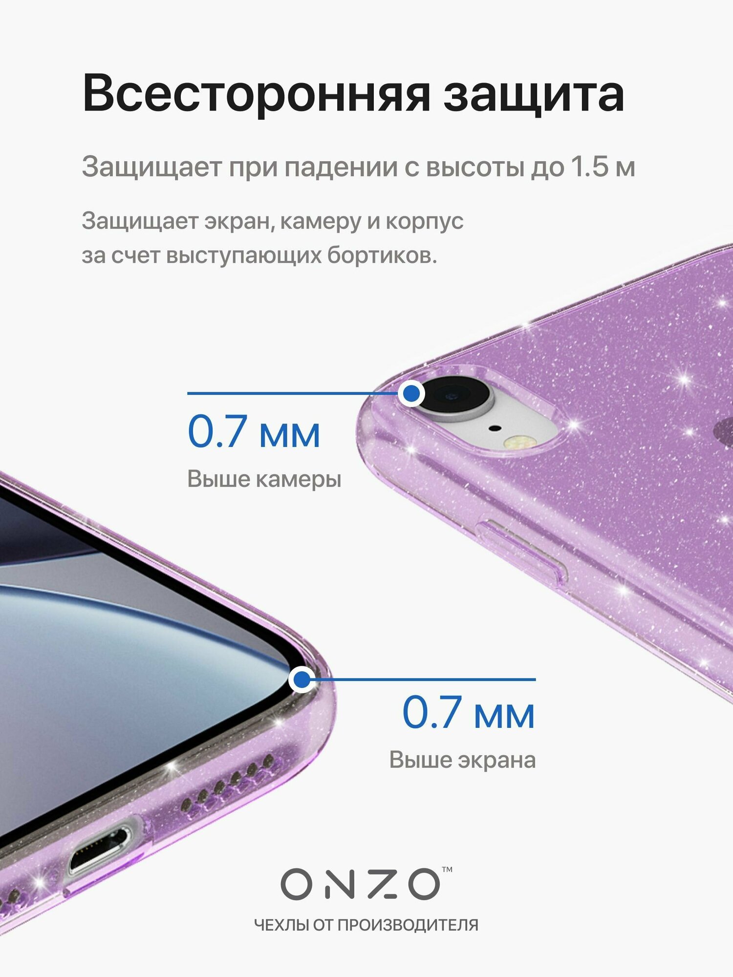 Чехол ONZO "CHIC" для Apple iPhone XR, сиреневый (серебряные блестки)