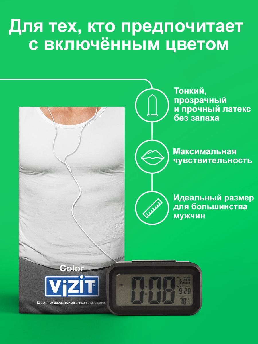 10 цен на Презервативы VIZIT Color Цветные ароматизированные, 12шт.