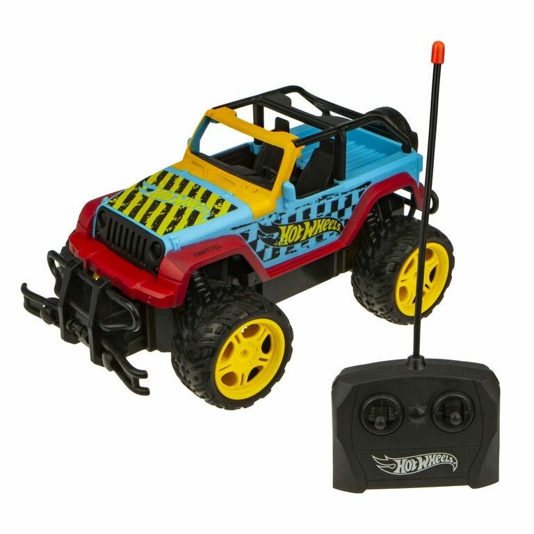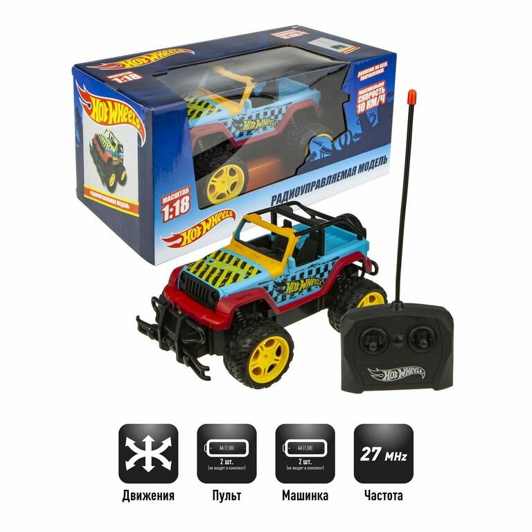 Hot Wheels Внедорожник на радиоуправлении, масштаб 1:18, 27 МГц, размер машинки 21 см, 4 канала: движение вперед/назад/влево/вправо, на батарейках