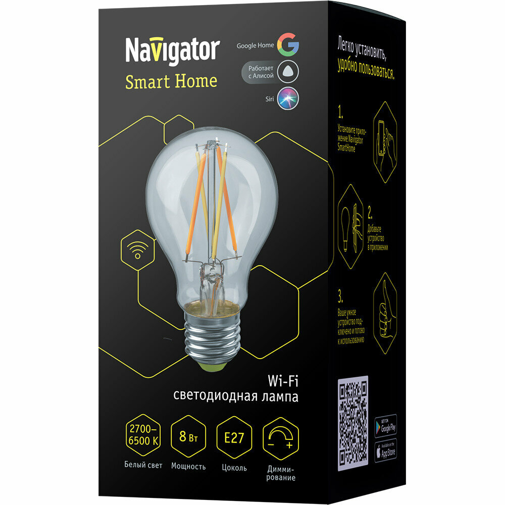Умная светодиодная лампа Navigator 80 554, 8 Вт, Е27, диммируемая, 2700-6500К информация: