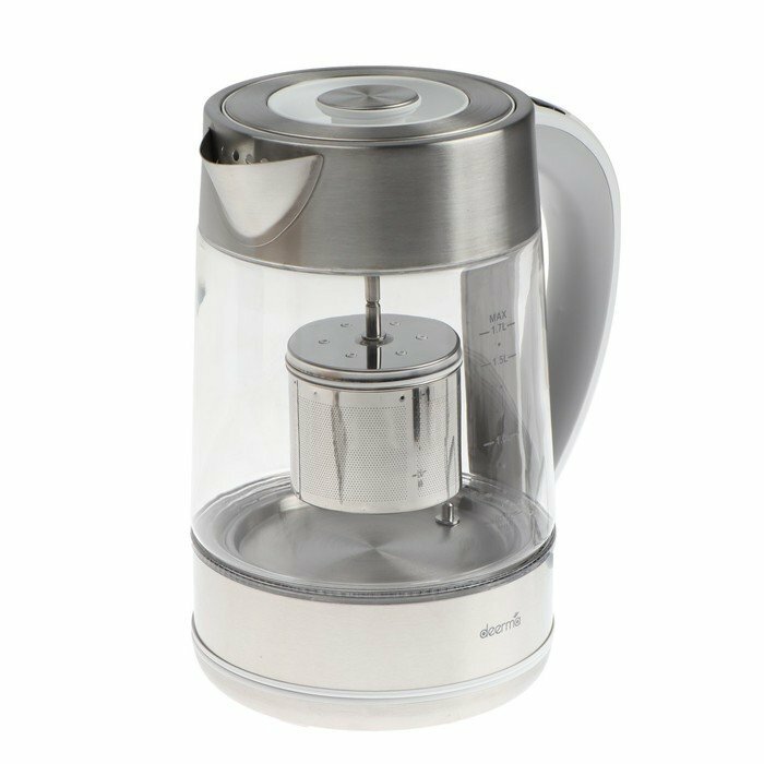 Отзывы на Чайник электрический DEERMA DEM-SH50W, стекло, 1.7 л, 2200 Вт, регулировка t°, серебристый
