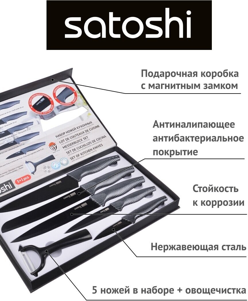 Набор Satoshi Kitchenware Carbon 803-075, 5 ножей и овощечистка