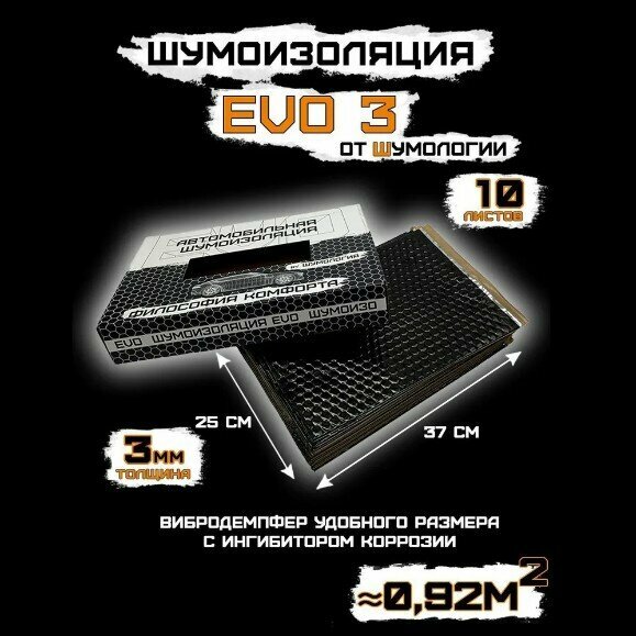 10 цен на Шумоизоляция для автомобиля - Шумология EVO 3.0 (10 листов 37*25см) Виброизоляция - 3 мм
