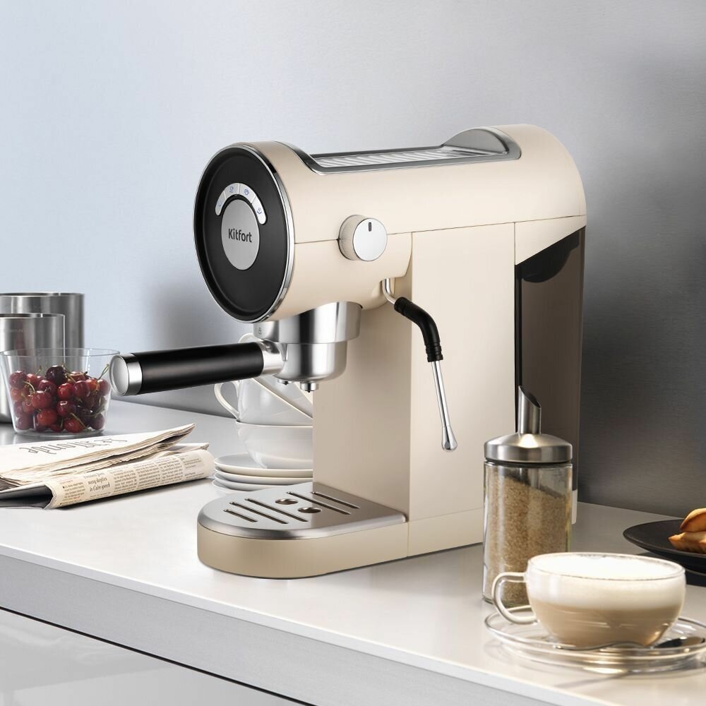 Кофеварка Kitfort КТ-783-3, рожковая, давление 20 Бар, быстрое приготовление, красная