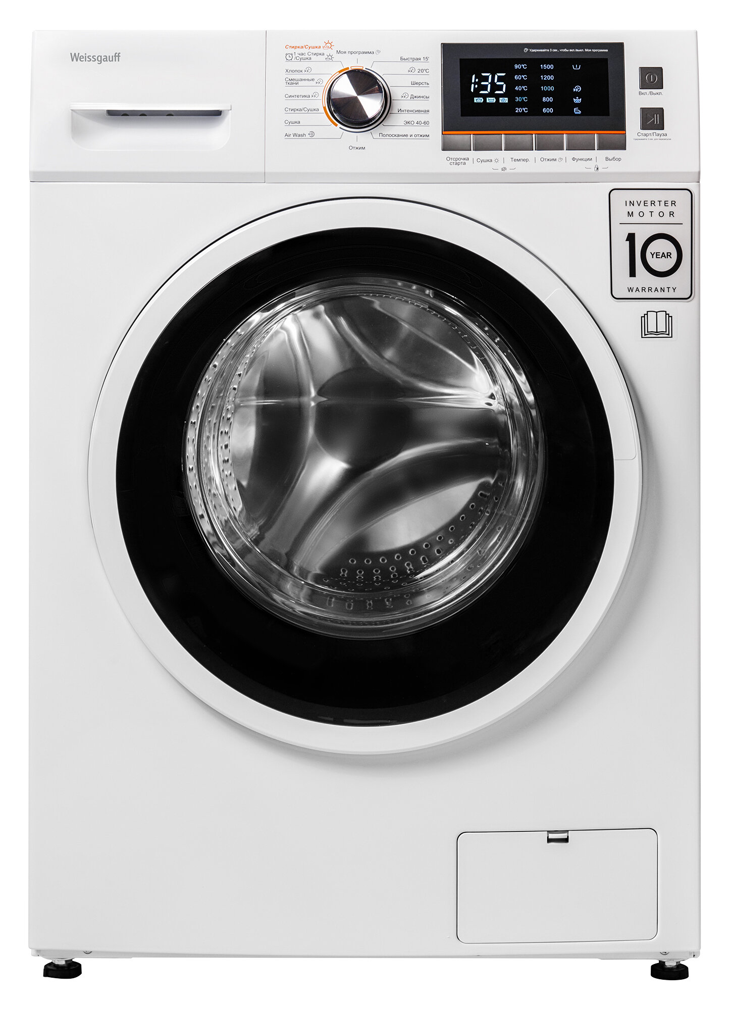 Стиральная машина WEISSGAUFF WMD 6160 D, с фронтальной загрузкой, 10кг, 1500об/мин, с сушкой информация: