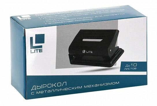 Lite Дырокол DL-10K Стандартный, 10 листов, 2 отверстия, черный