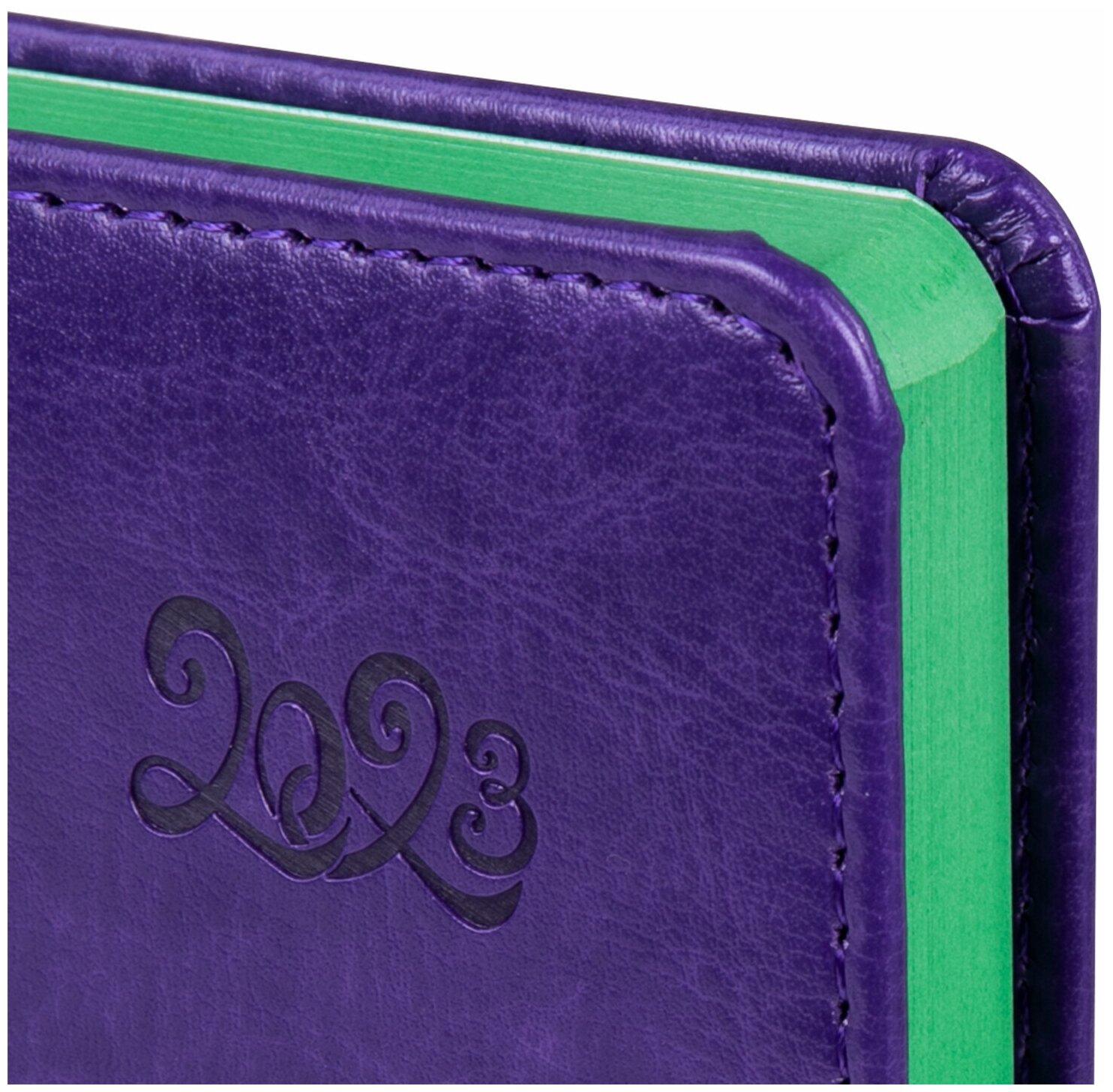 Ежедневник датированный 2023, А5, 168л., кожзам, Brauberg "Rainbow", ляссе, сиреневый, зел. срез информация: