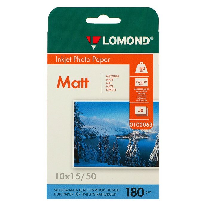 Фотобумага для струйной печати А6 (10x15) LOMOND, 180 г/м², матовая односторонняя, 50 листов (0102063)
